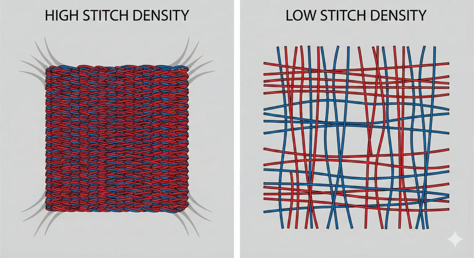 Insufficient density leads to poor coverage and visible fabric through stitches. Logos and text may look thin or incomplete.