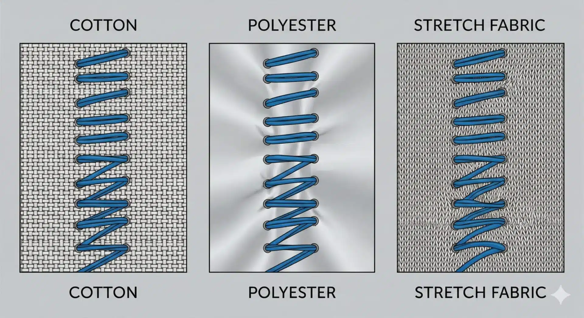 Cotton, polyester, and stretch fabrics react differently to stitches. Ignoring these differences causes puckering, distortion, or pull compensation issues.