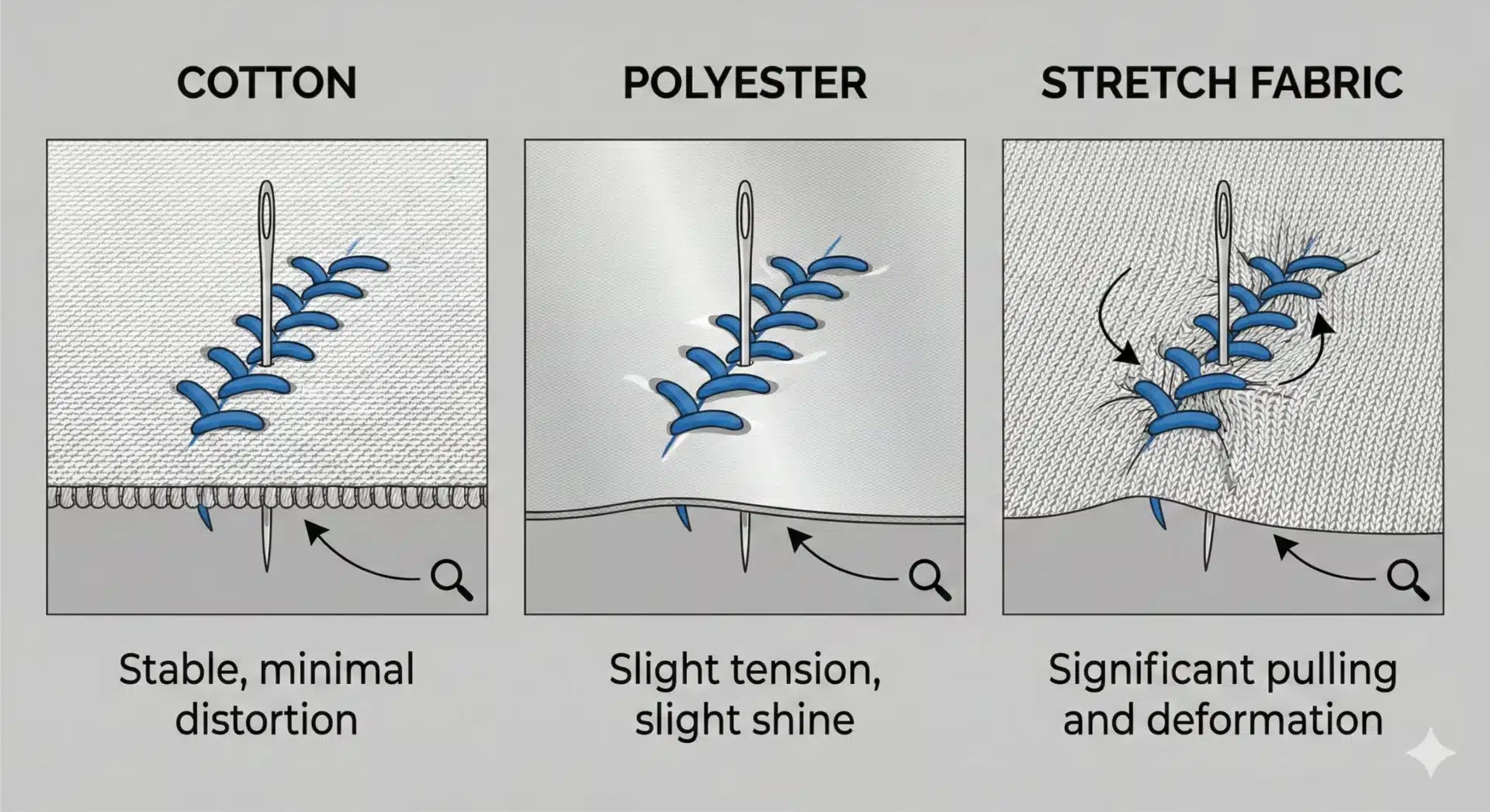 Ignoring fabric behavior results in distortion and puckering.