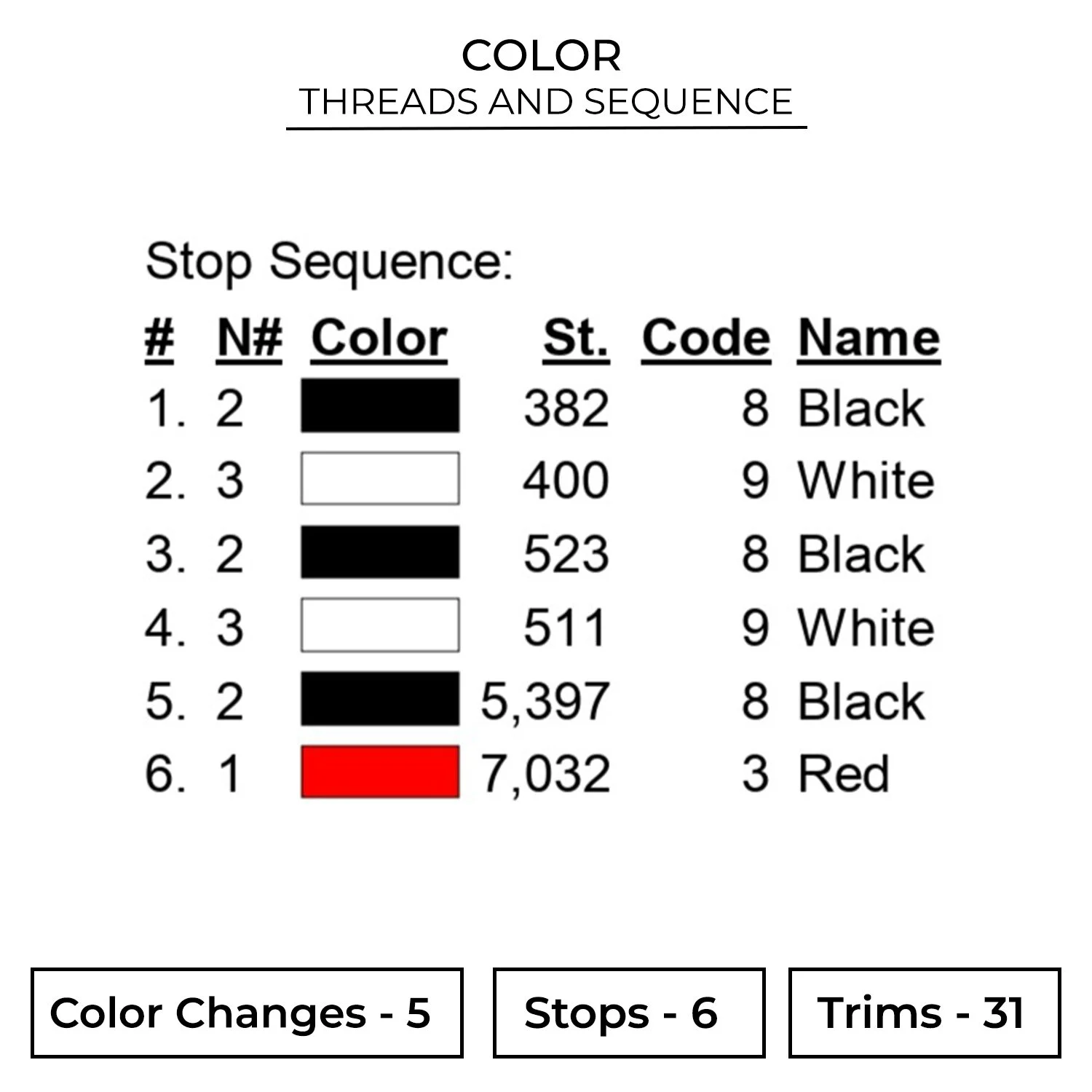 The embroidery design is available in 7 sizes :