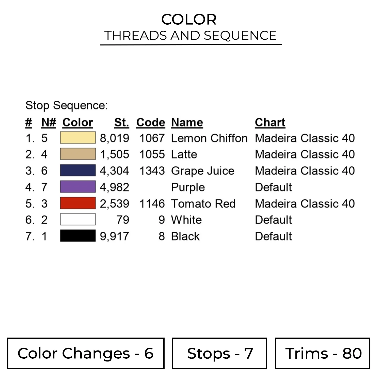 The embroidery design is available in 6 sizes :