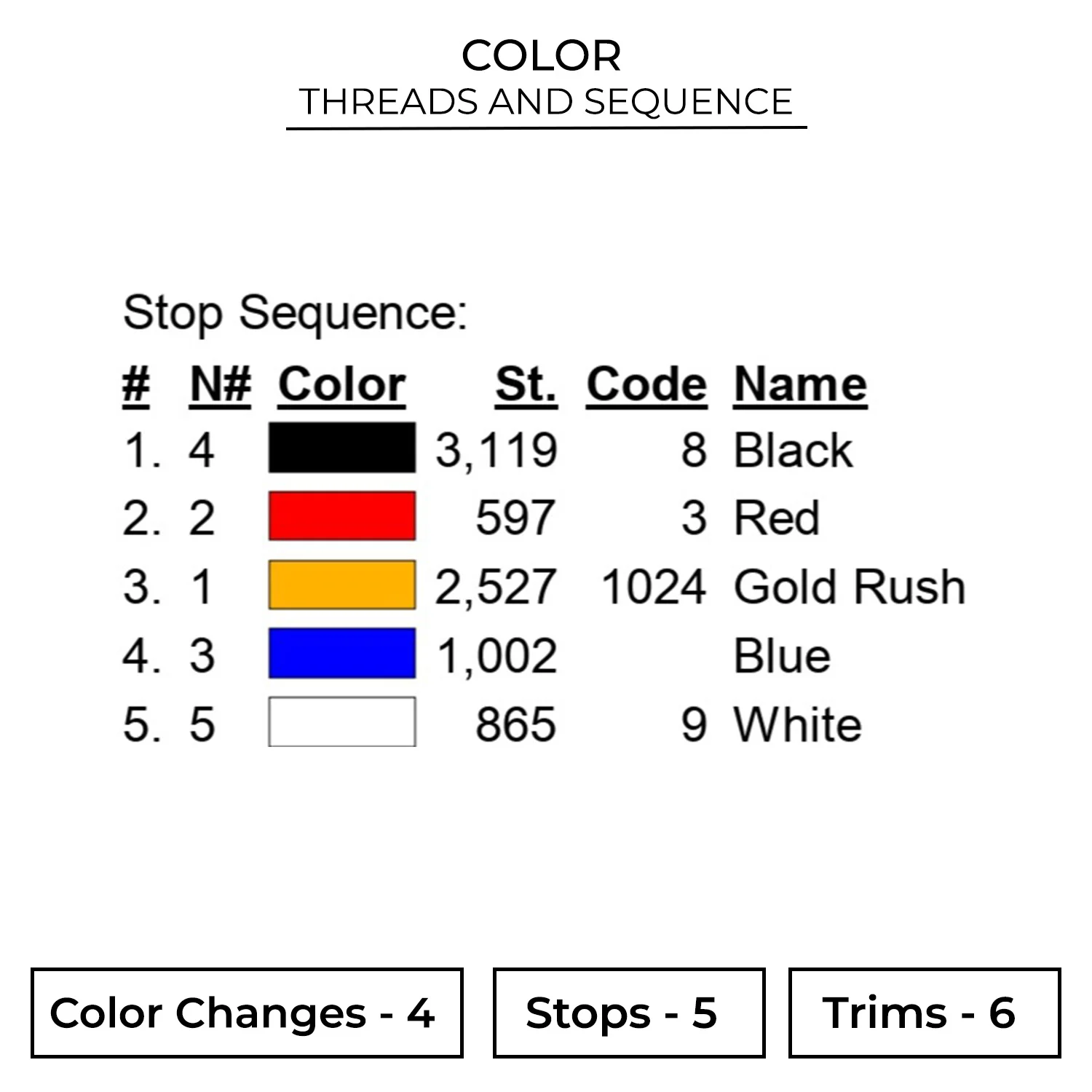 The embroidery design is available in 5 sizes :