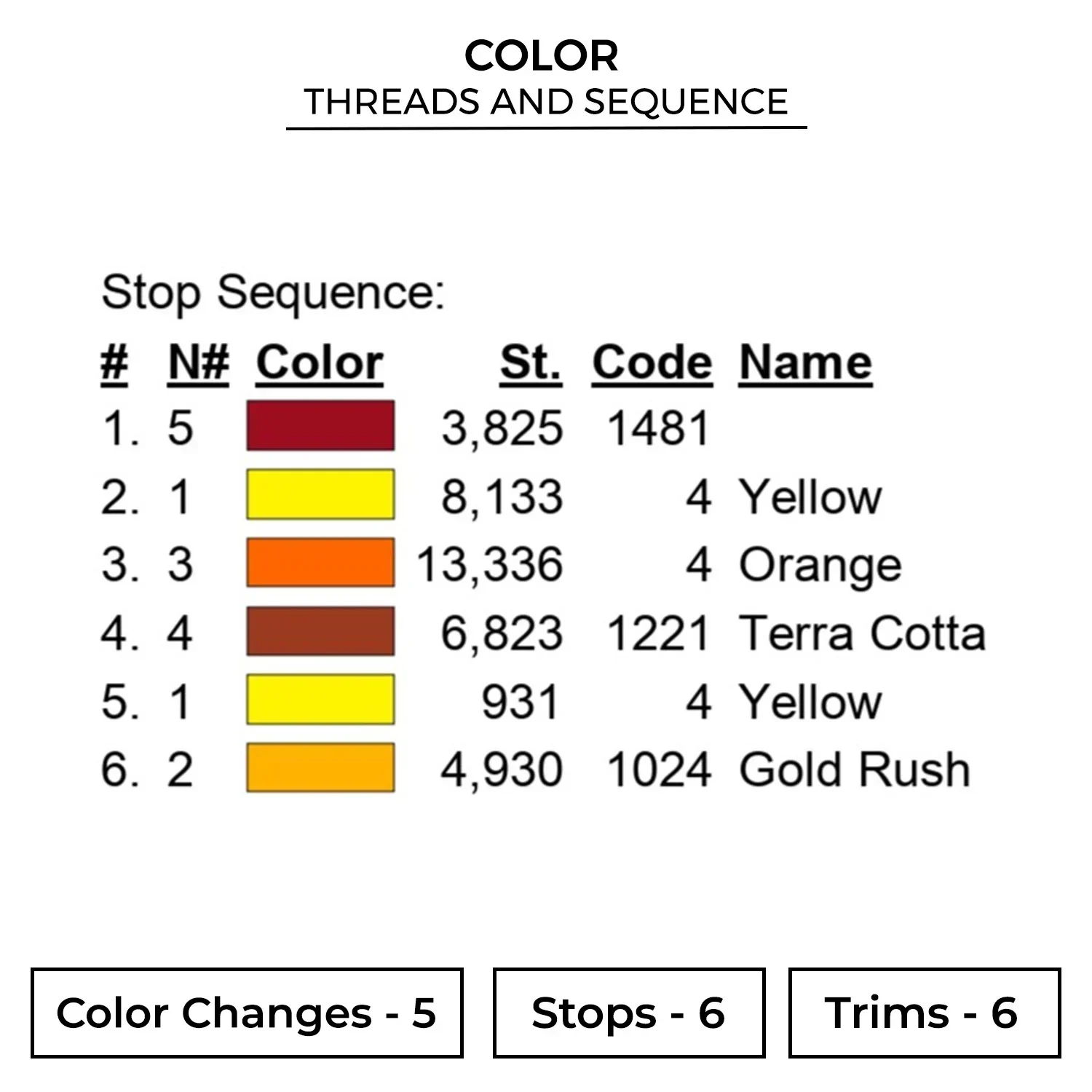 The embroidery design is available in 6 sizes :