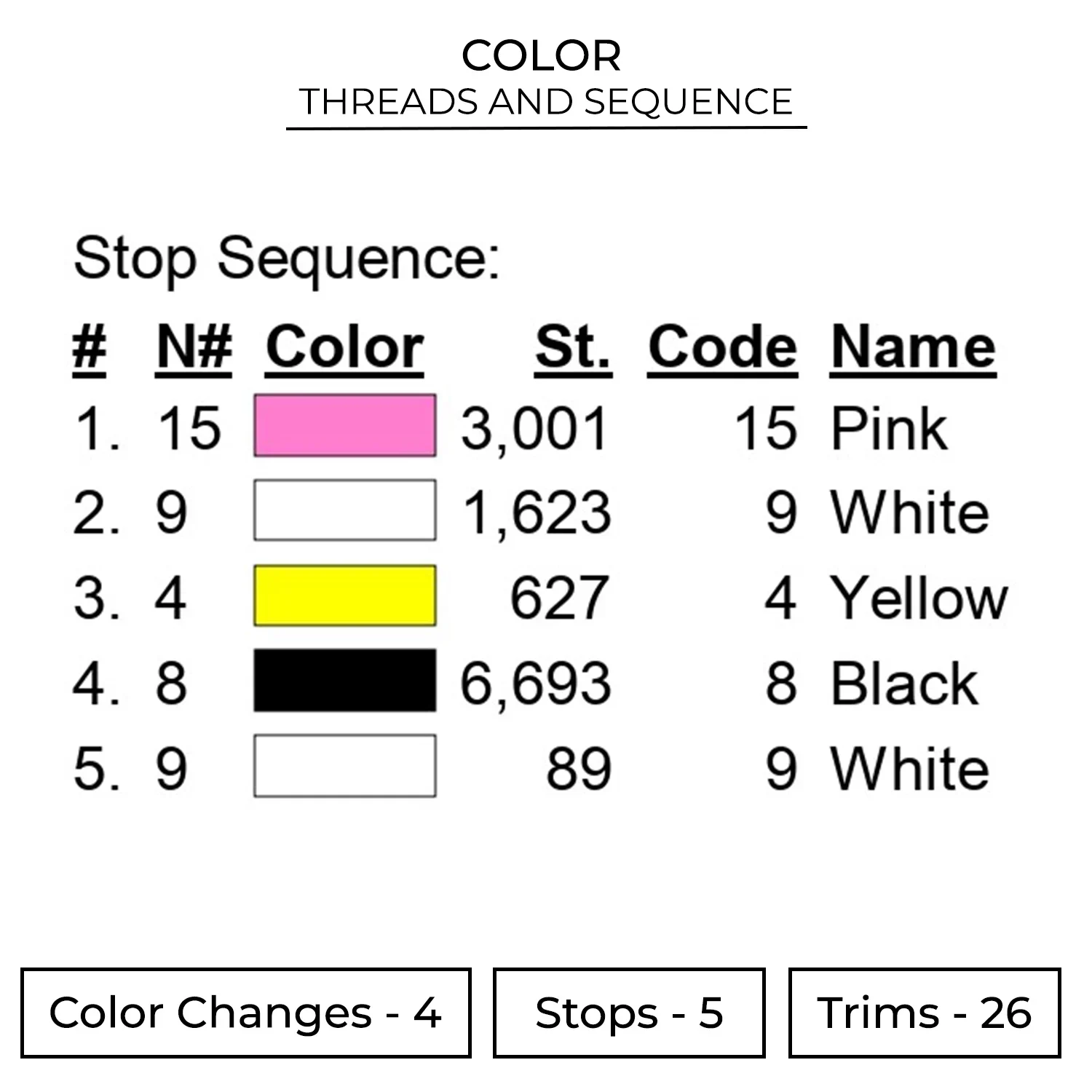 The embroidery design is available in 5 sizes :
