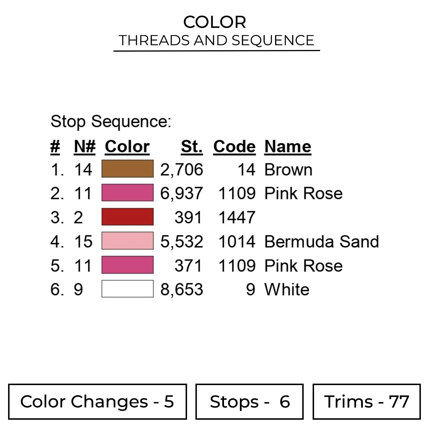 The embroidery design is available in 6 sizes :