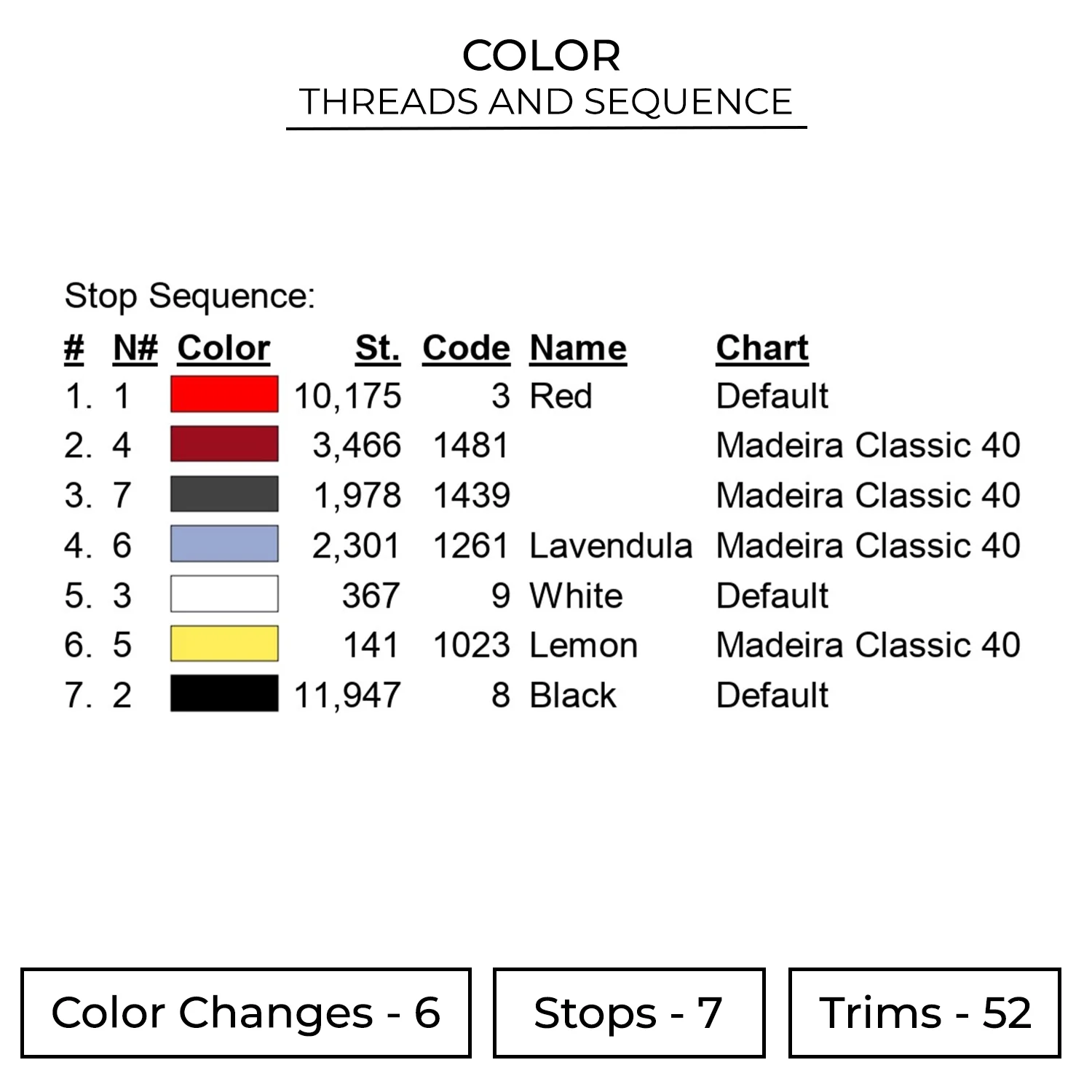 The embroidery design is available in 6 sizes :