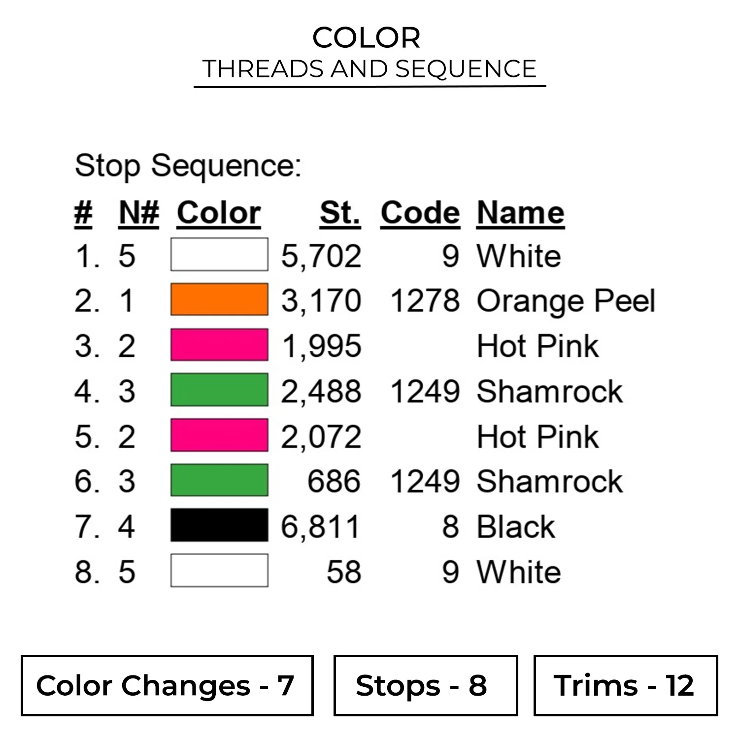The embroidery design is available in 7 sizes :