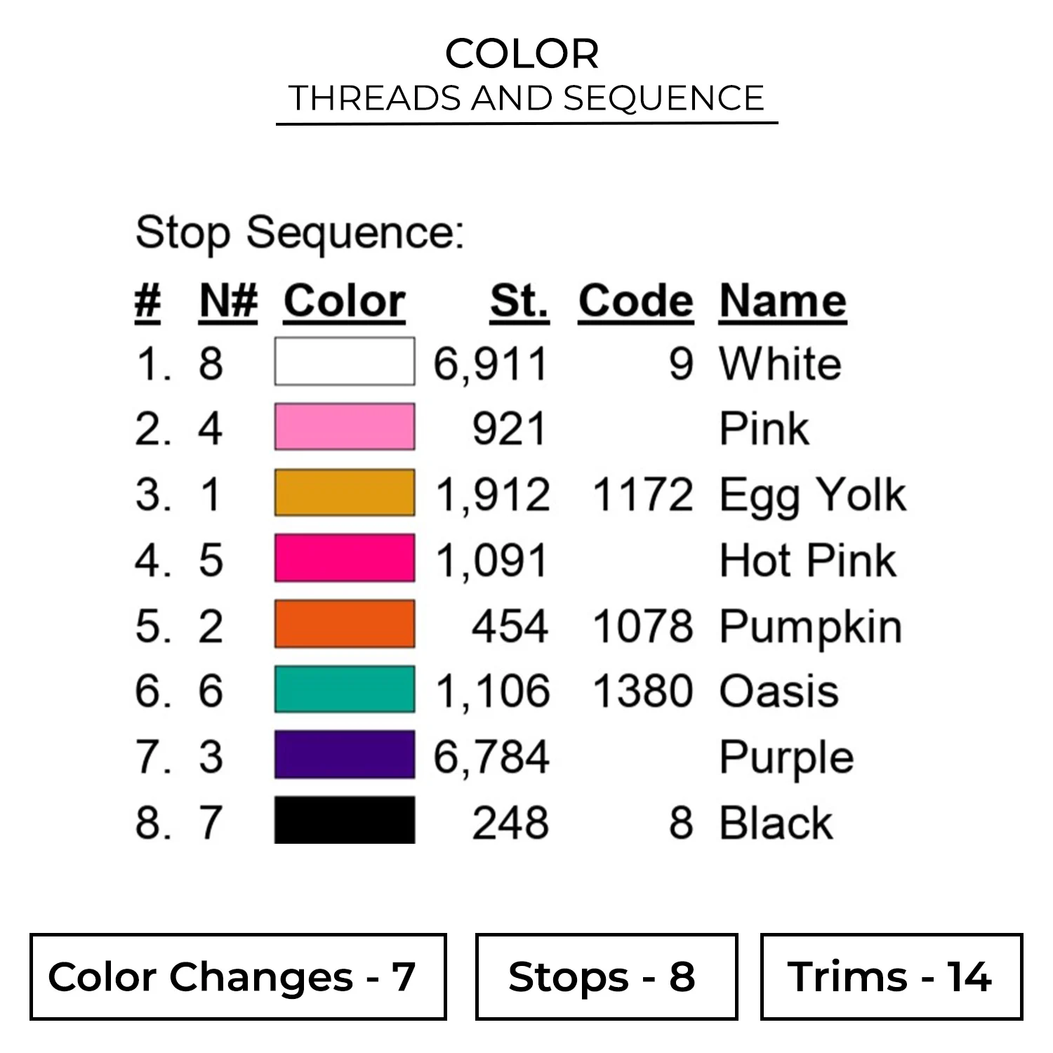 The embroidery design is available in 8 sizes :