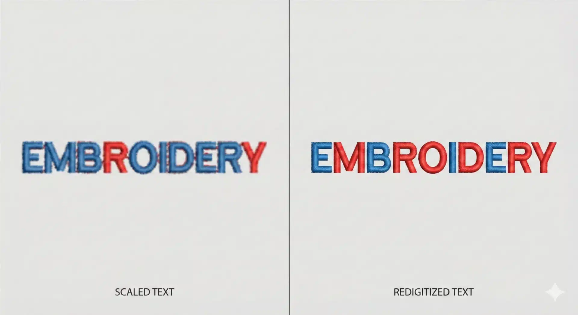 Embroidery files cannot be resized like standard images. Scaling without redigitizing often leads to production problems and inconsistent results.